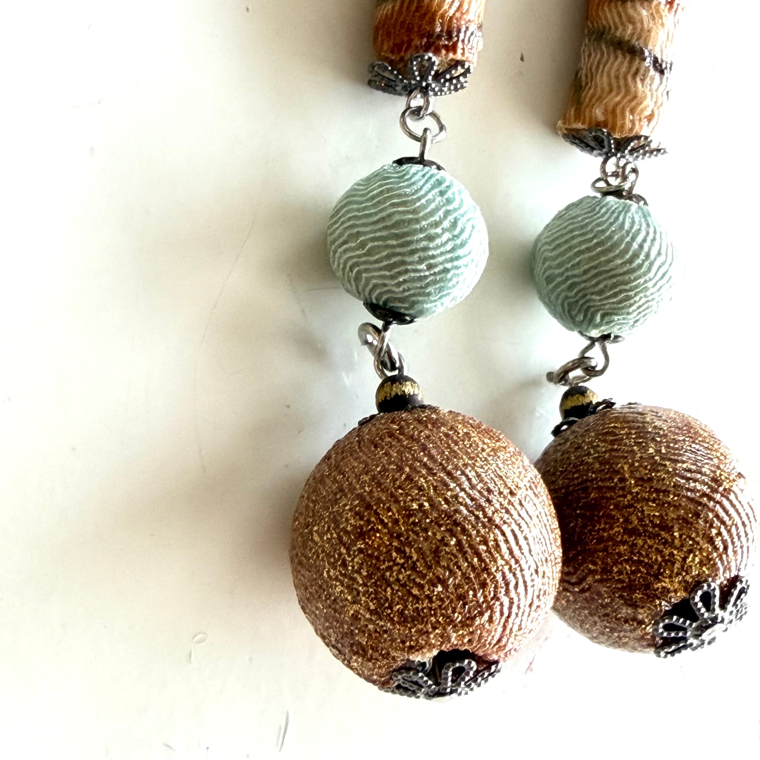 • 素材: 茶色玉はシルク、藍はコットン。金具