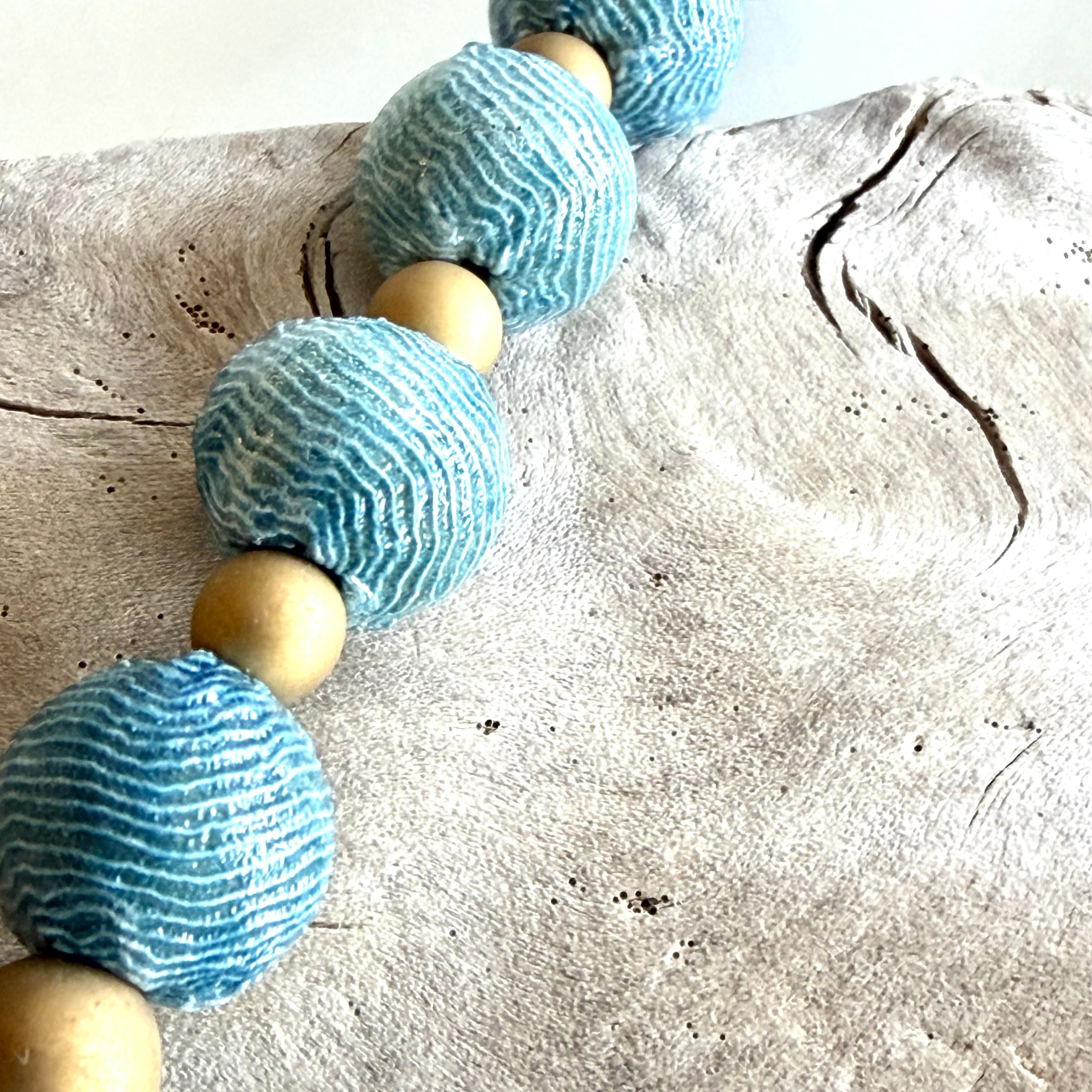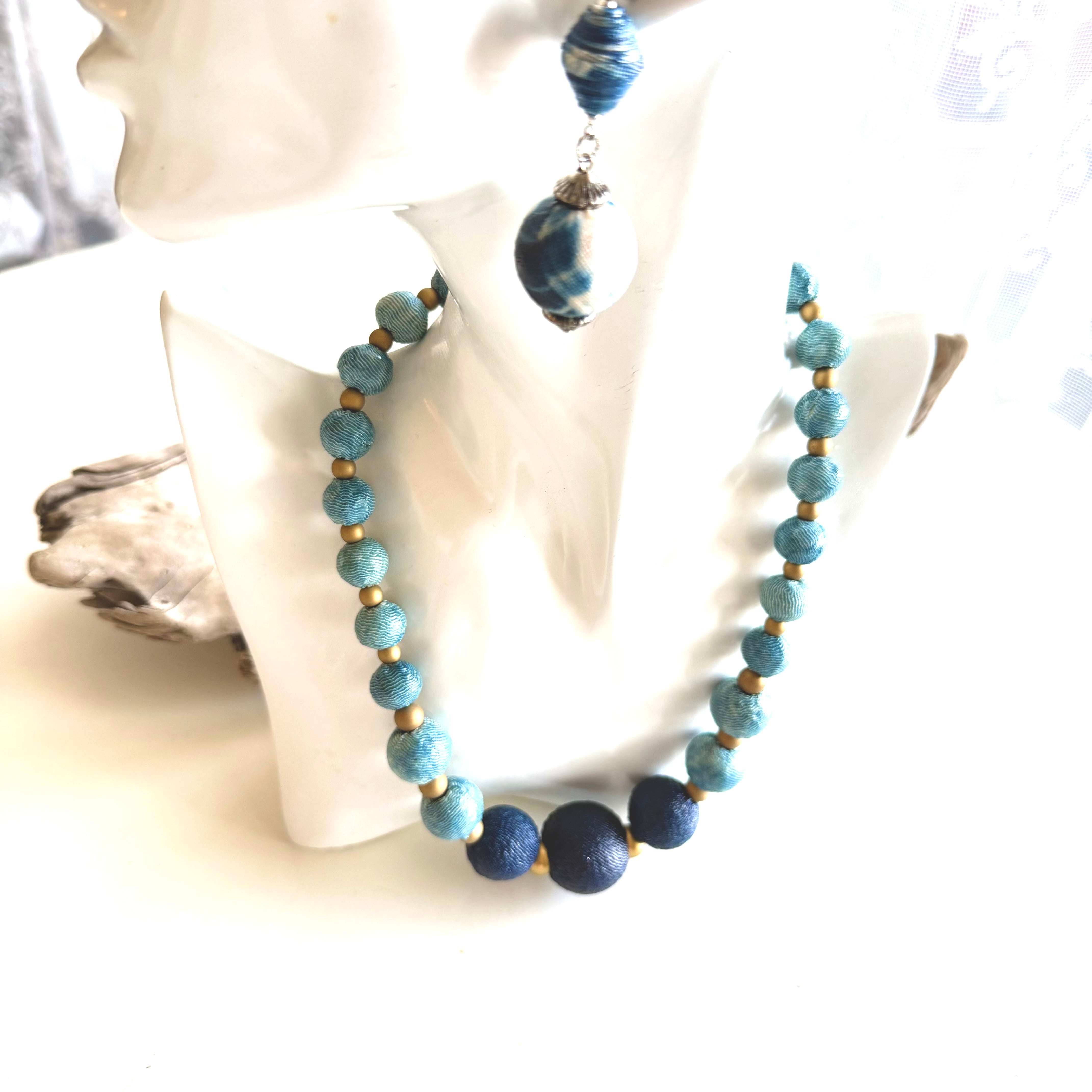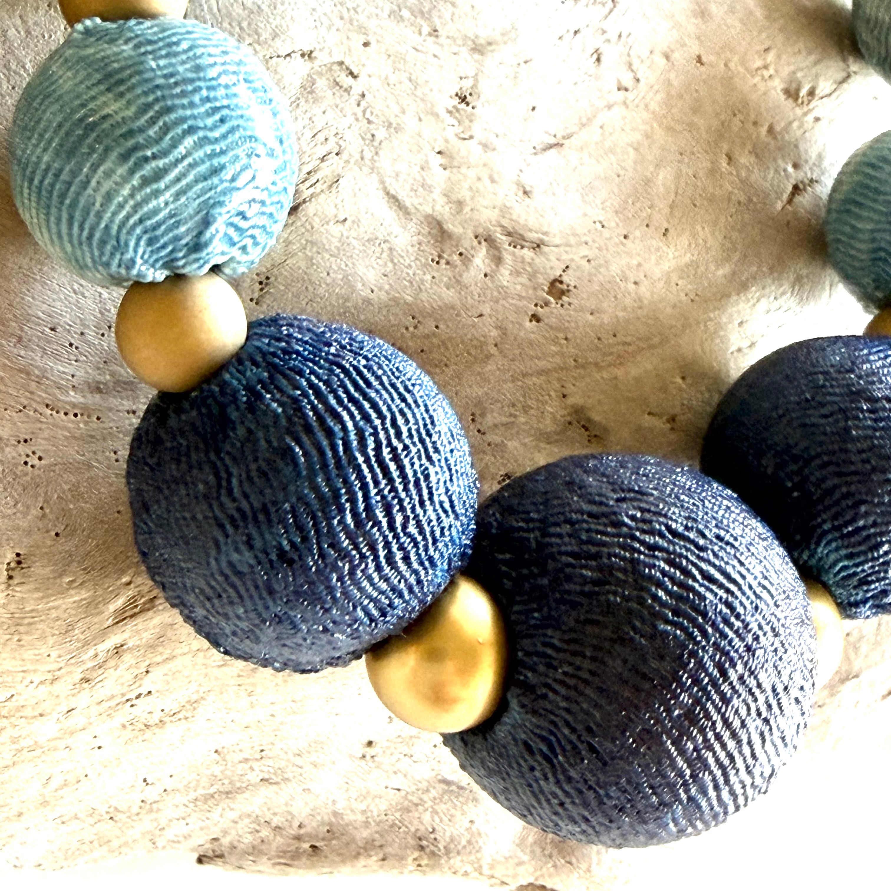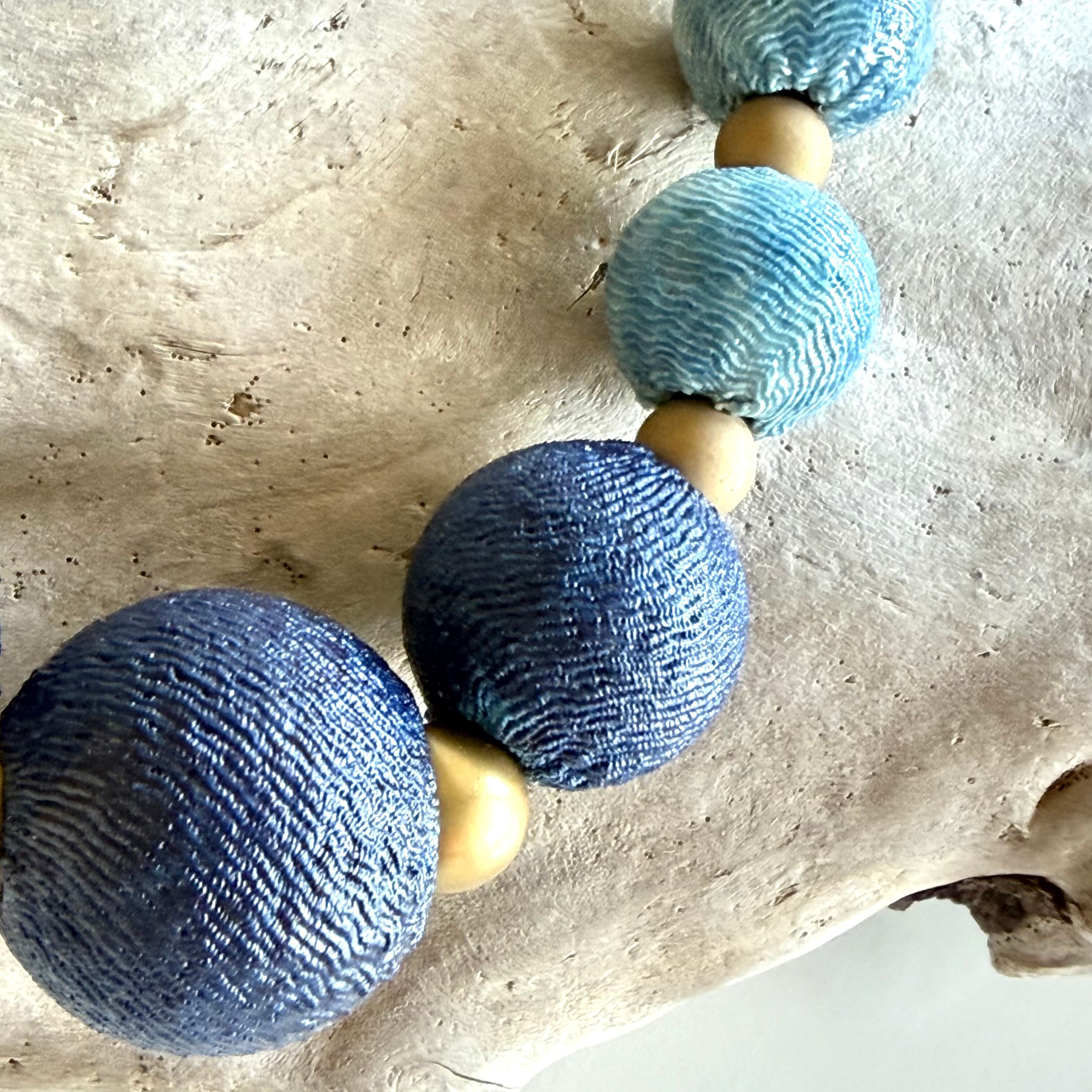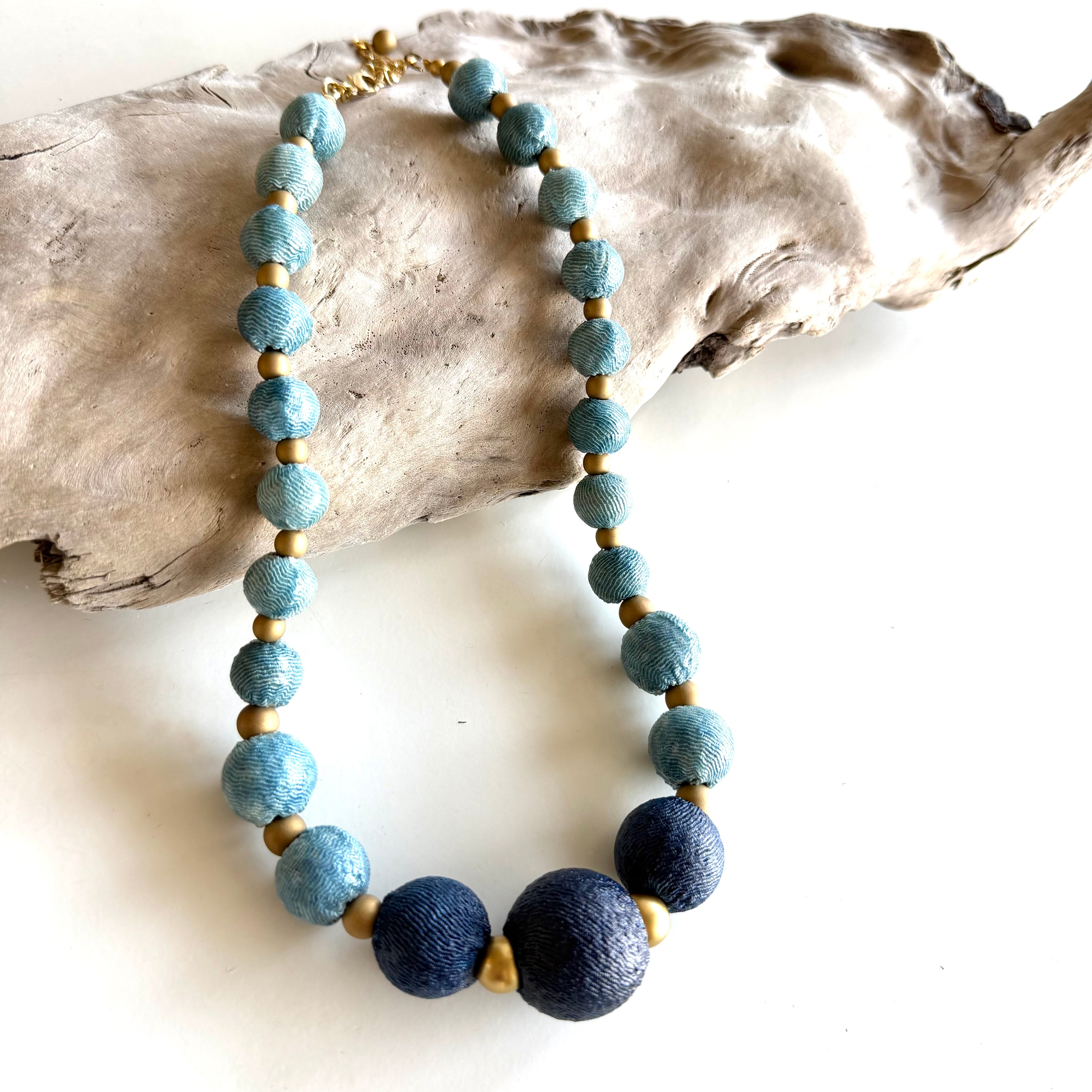 【一点もの】玉ネックレス|藍の生葉染めと深い藍の二色使い